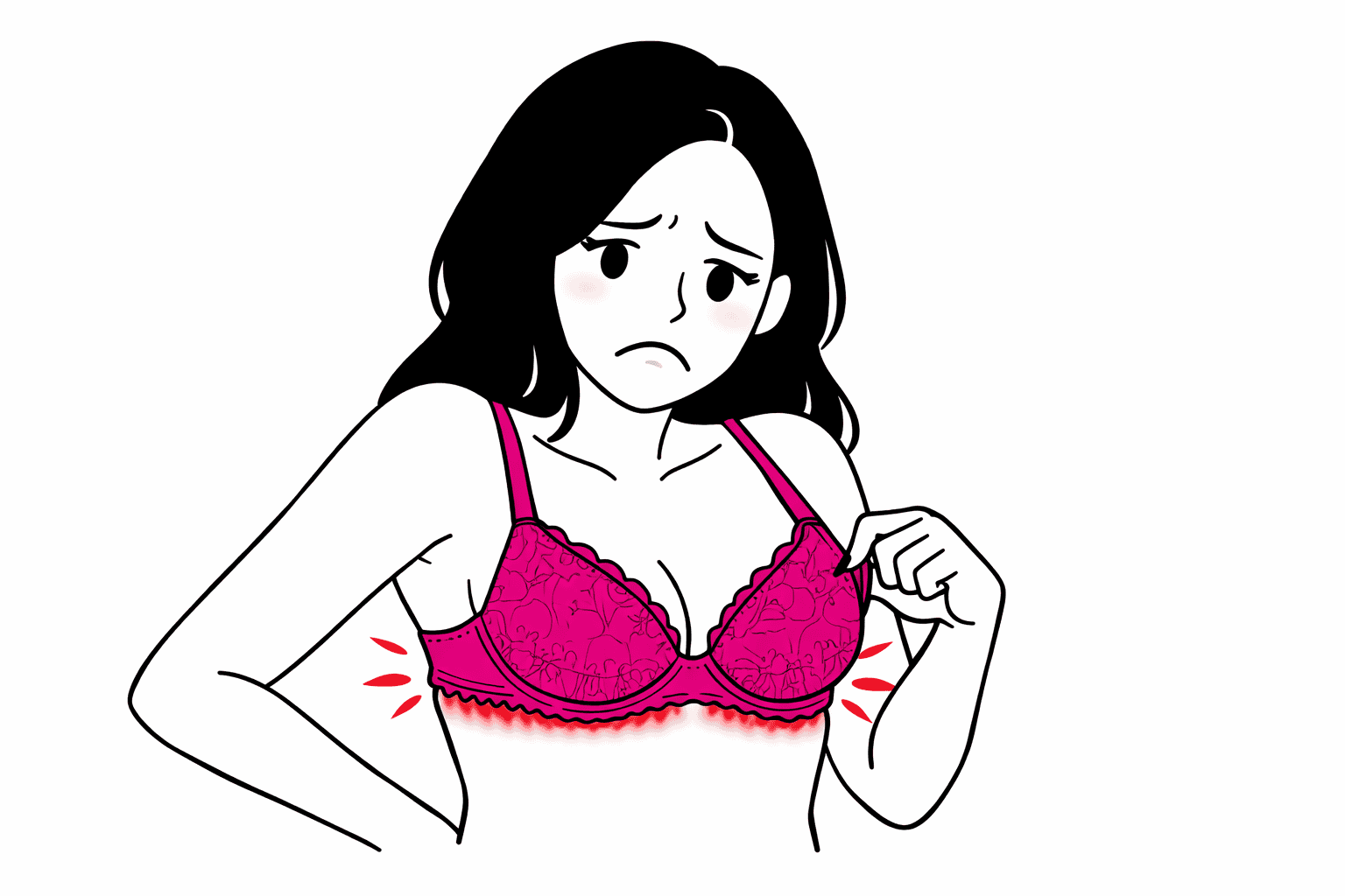 - Underwires poke, pinch, or sit on breast tissue